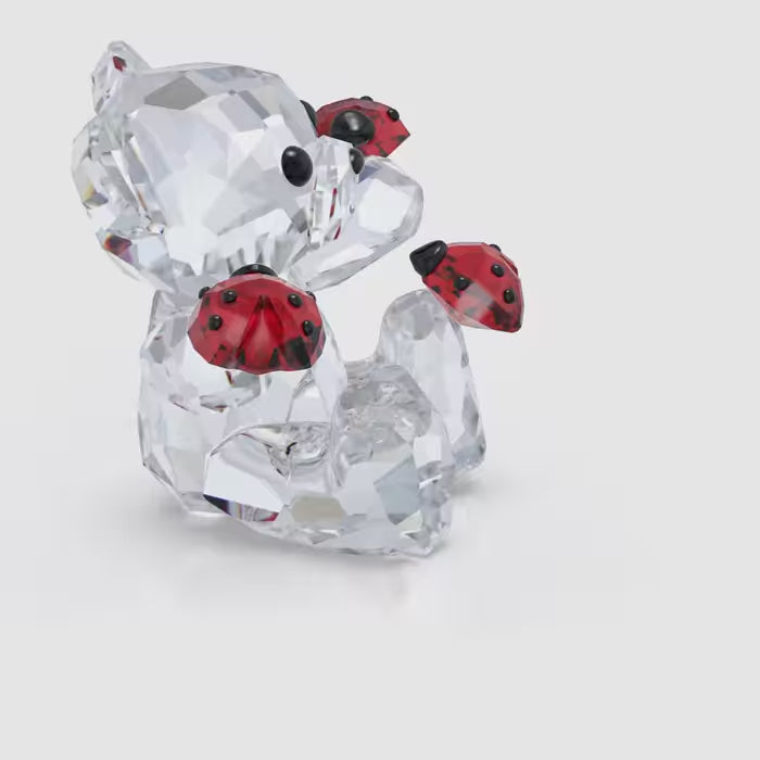 Figurine en cristal de la marque Swarovski de la collection Kris Bear représentant un mignon petit ourson accompagné de trois petites coccinelles.