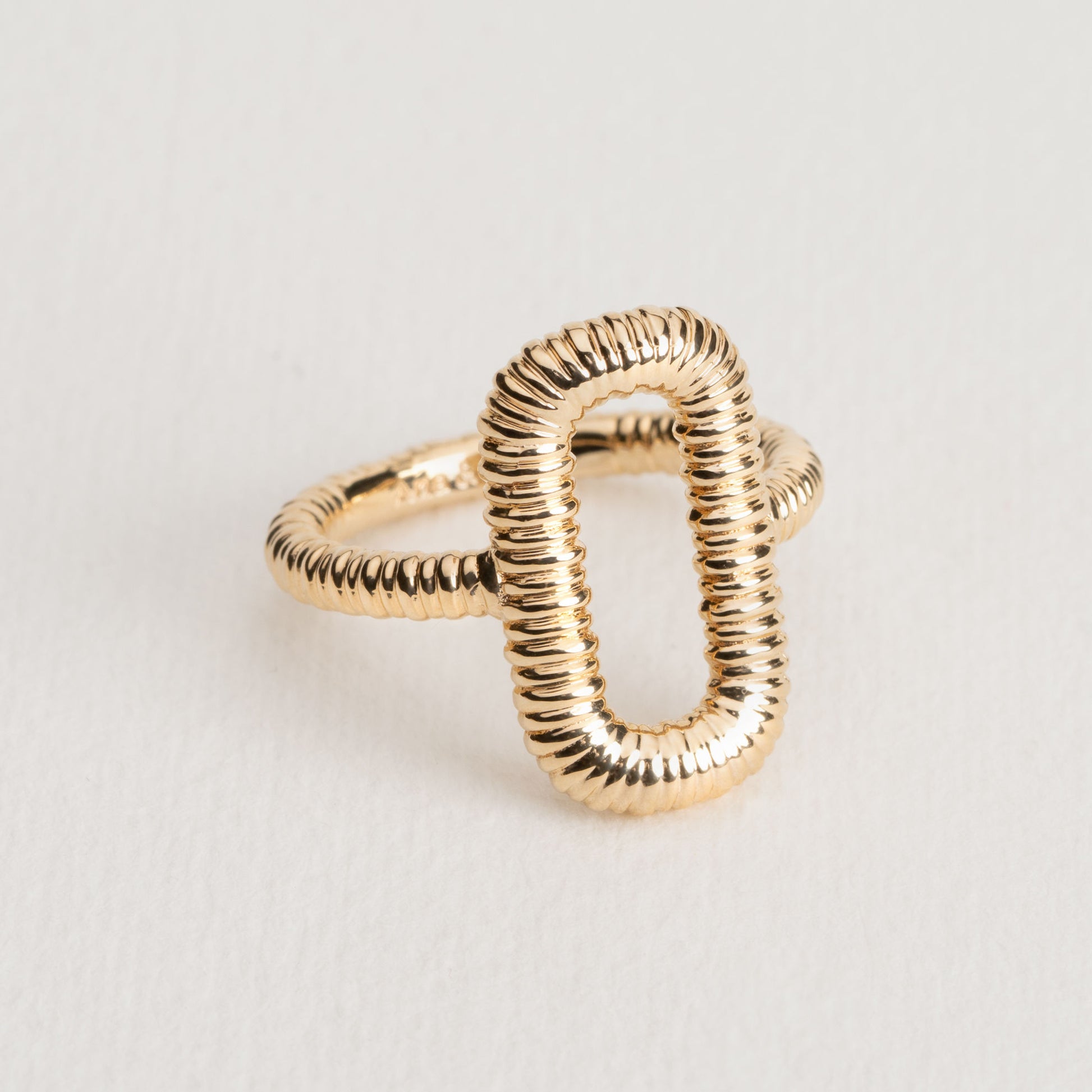 Bague en plaqué or 18 carats de la marque parisienne Ana et Cha de la collection Brenda avec un grand maillon texturé.